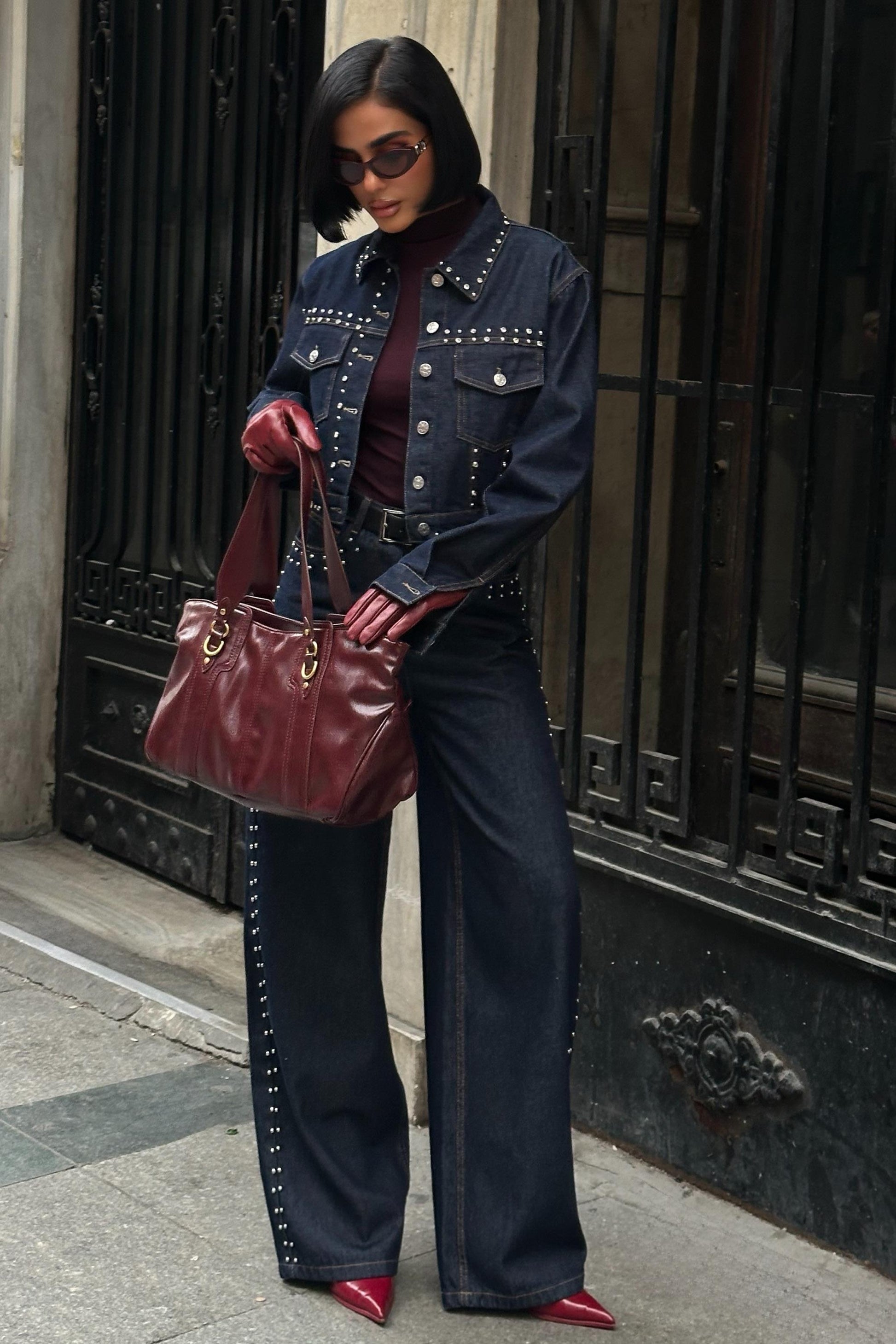 ✨ Studded Denim Jacket & Wide-Leg Pants Set – 100% Cotton Premium Streetwear Co-ord