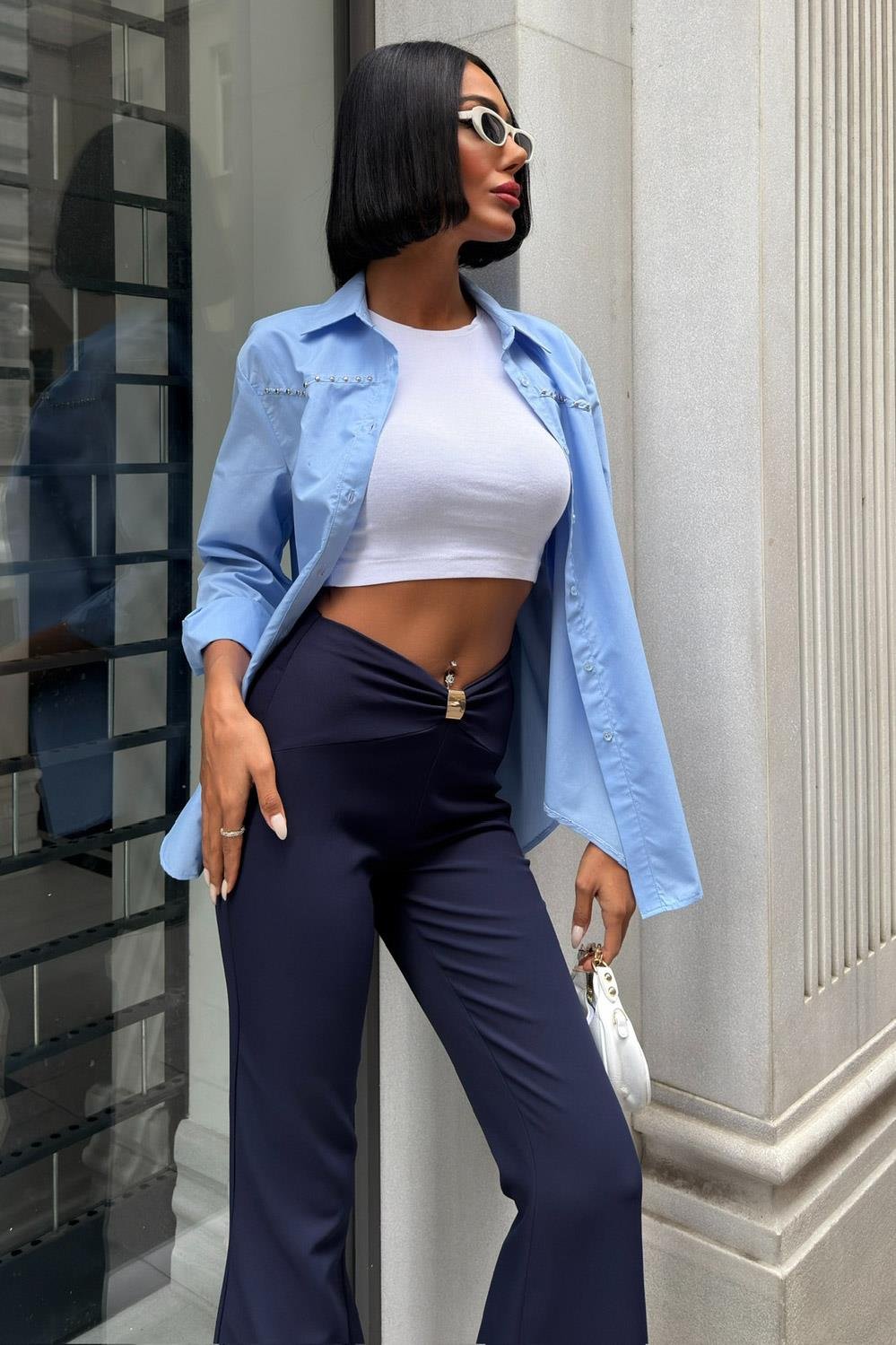 Pair it with a cropped turtleneck or fitted shirt and finish with pointed heels or boots for a confident and elongating silhouette.