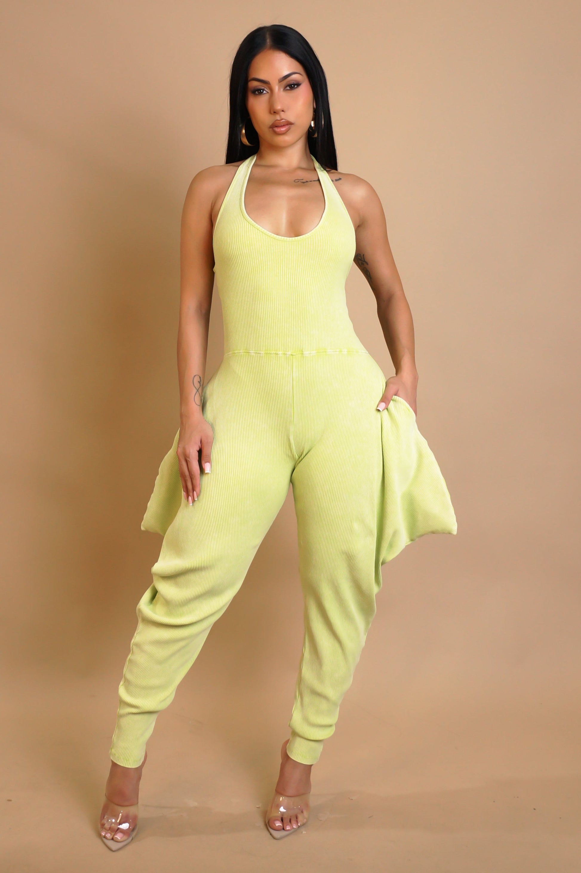 Indulge in luxury with our "In The Loop" jumpsuit in vibrant yellow. Made from 100% polyester, this jumpsuit offers a comfortable and stretchy fit. A perfect choice for a stylish and effortless look, whether you're out on the town or relaxing at home. Elevate your wardrobe with this exquisite piece.
