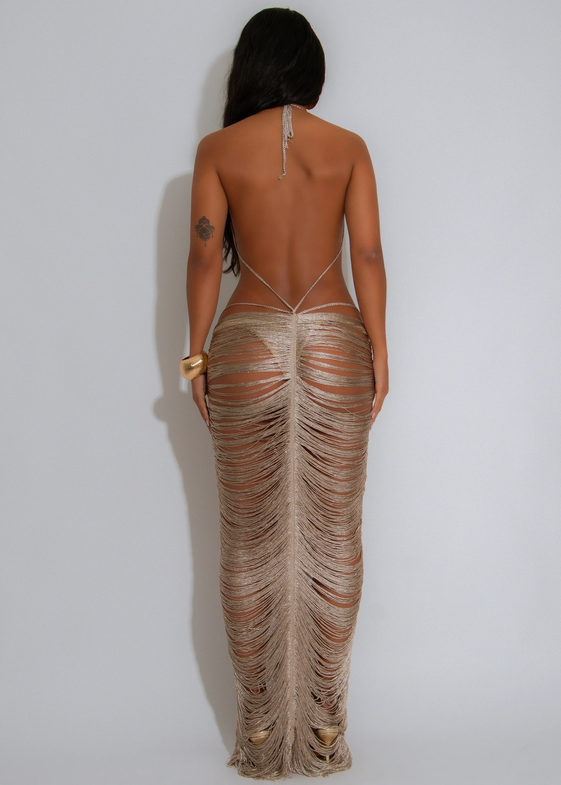 Stand out and show off in the Latch On Maxi Dress. Made from 100% POLY fabric, this dress is perfect for making a bold statement. The silver color adds a touch of glamour while the great stretch allows for comfort and flexibility. Be daring and turn heads in this stunning dress!